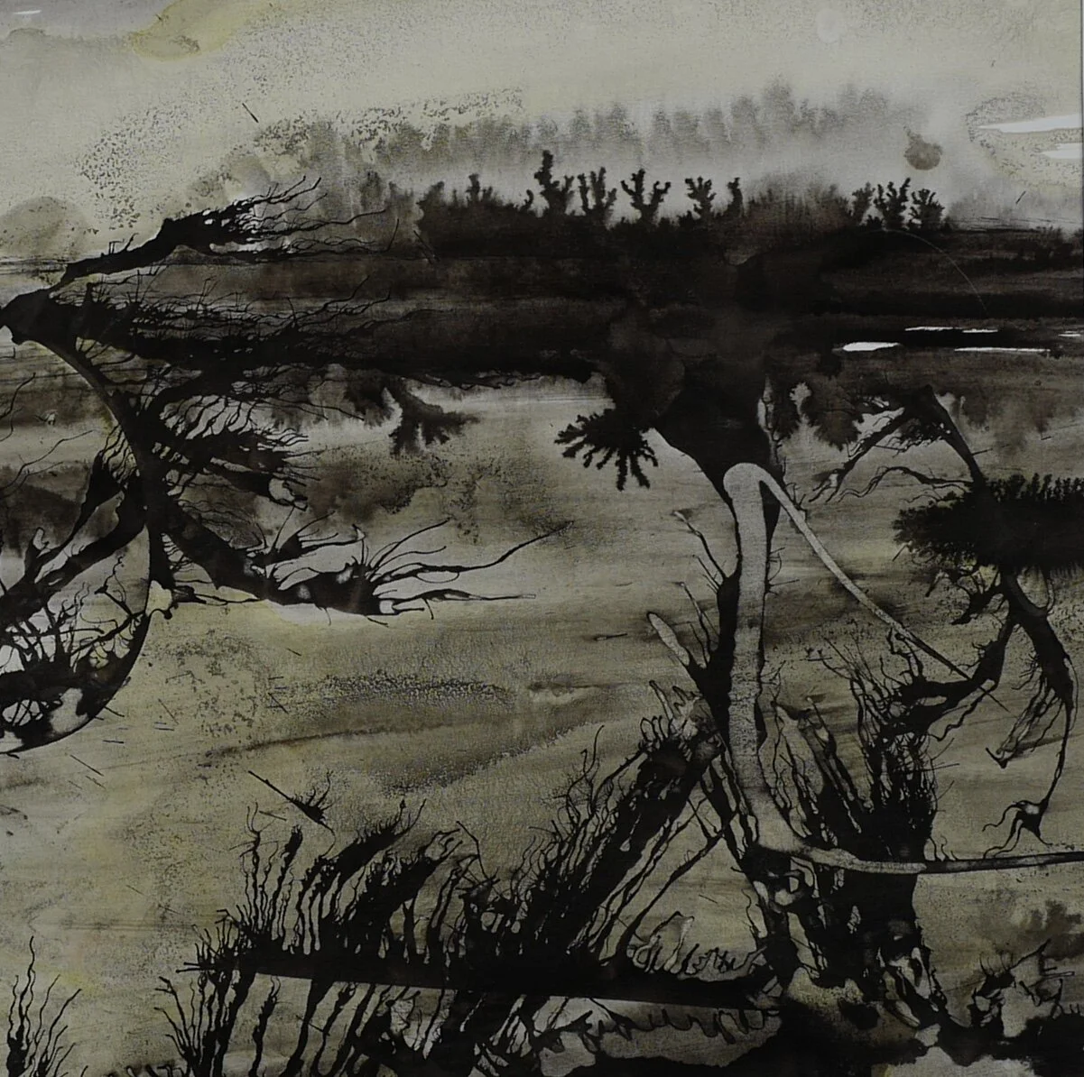 Paysage, 2013, 15X25, encre de chine & huile sur papier